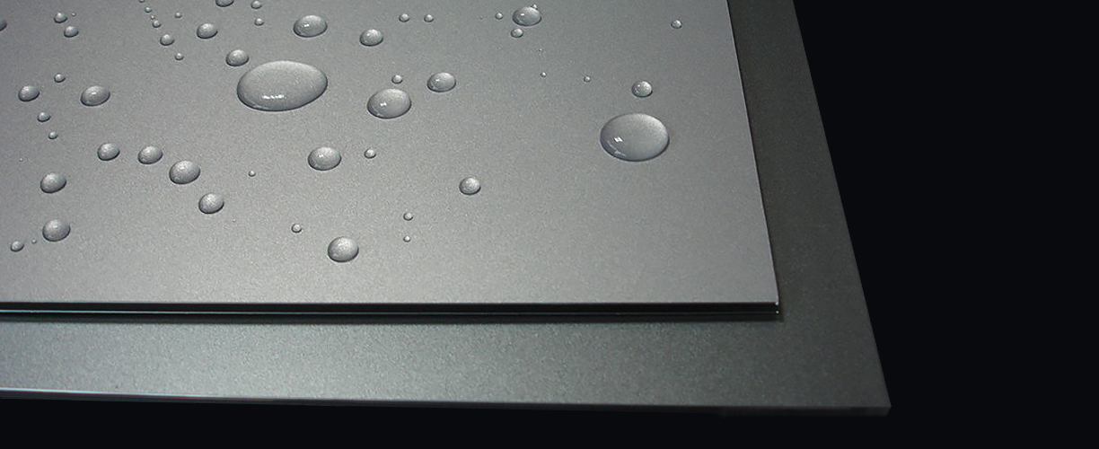 納米氟碳鋁塑板在氟碳涂層表面再涂裝一層自潔性保護(hù)層,該涂層與灰塵等污染物相隔離,并且分解大氣中的有機(jī)污染物,從而達(dá)到自潔的效果。
